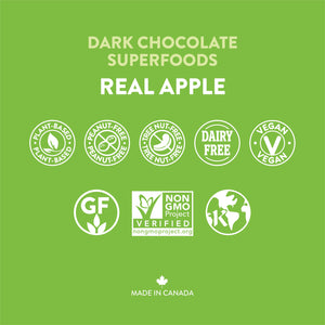 Dark chocolate and apple - so delicious! Our Dark Chocolate Superfoods are made with real, whole fruits and then wrapped in 70% dark vegan chocolate.